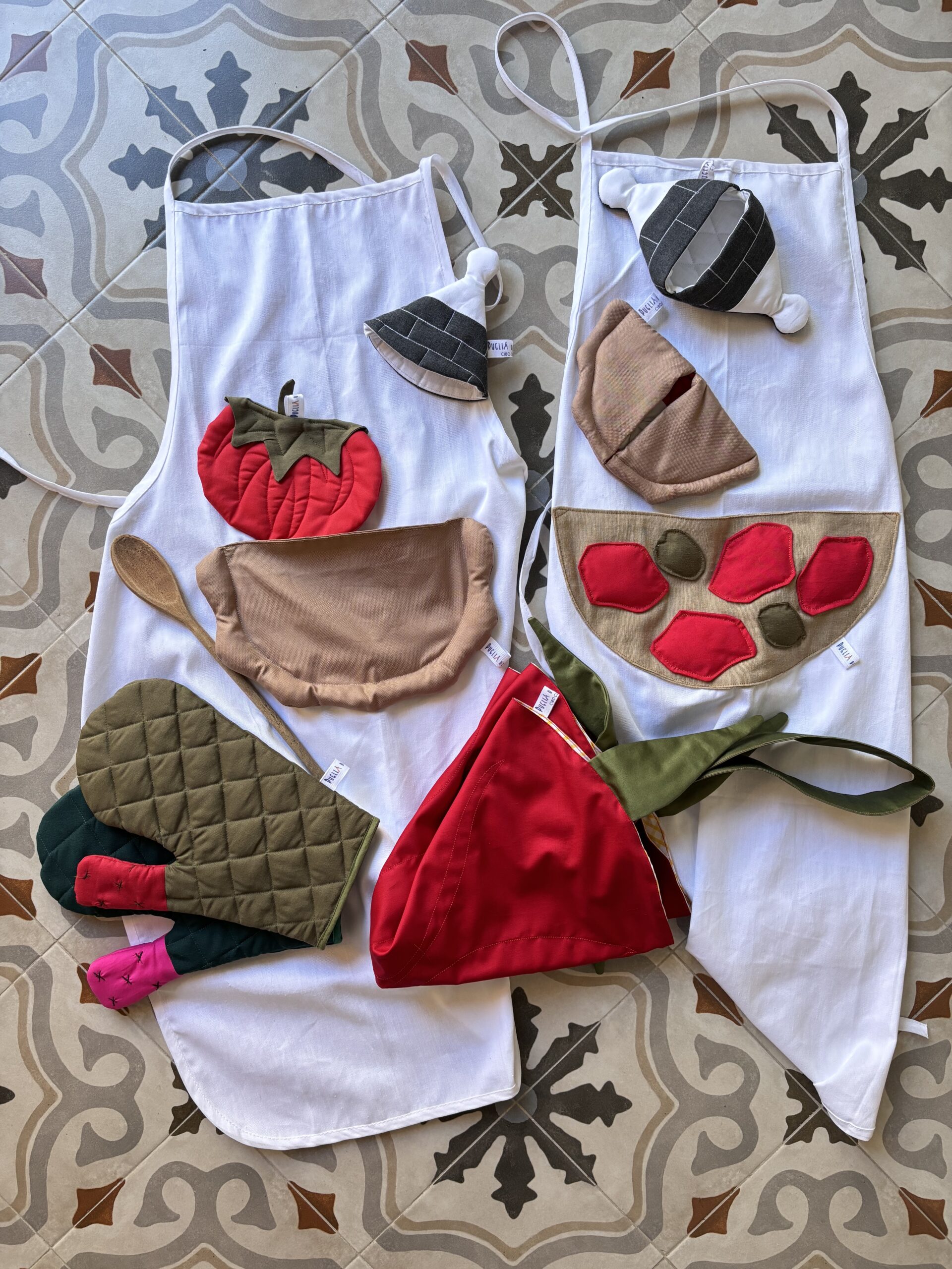 Quando acquisti un oggetto di Puglia di Stoffa stai acquistando un pezzo di artigianato non per forza utile, ma emozionale. Ti porti un’emozione, quella del cibo pugliese, ovunque. Per chi vive lontano, questo semplice oggetto ha un valore immenso.